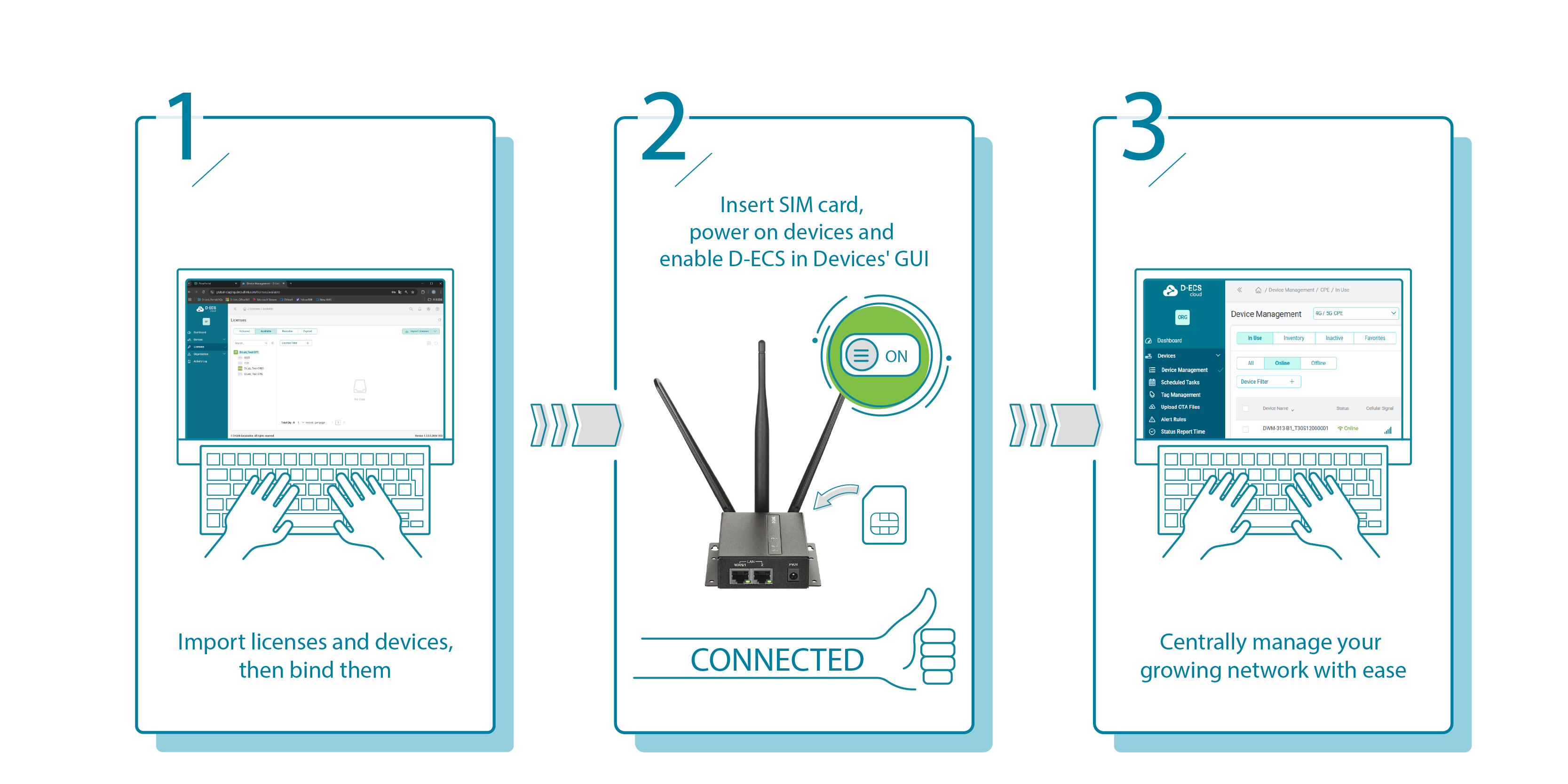 Managing and supporting M2M devices remotely shouldn’t be complicated. With D-ECS, D-Link’s cloud-based platform, you can manage, monitor, and troubleshoot your 4G/5G M2M devices anytime, anywhere—no complex remote access setup required. Streamline operations, reduce downtime, and improve customer service effortlessly.