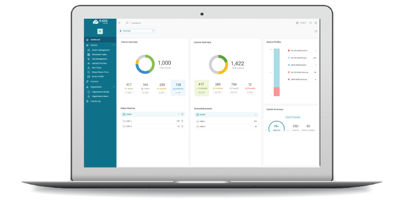 D-ECS is a secure, cloud-based platform hosted on AWS that simplifies the remote management of your 4G/5G M2M devices—no technical expertise required. Whether managing routers, modems, or gateways, D-ECS offers scalable control from anywhere through an intuitive dashboard.