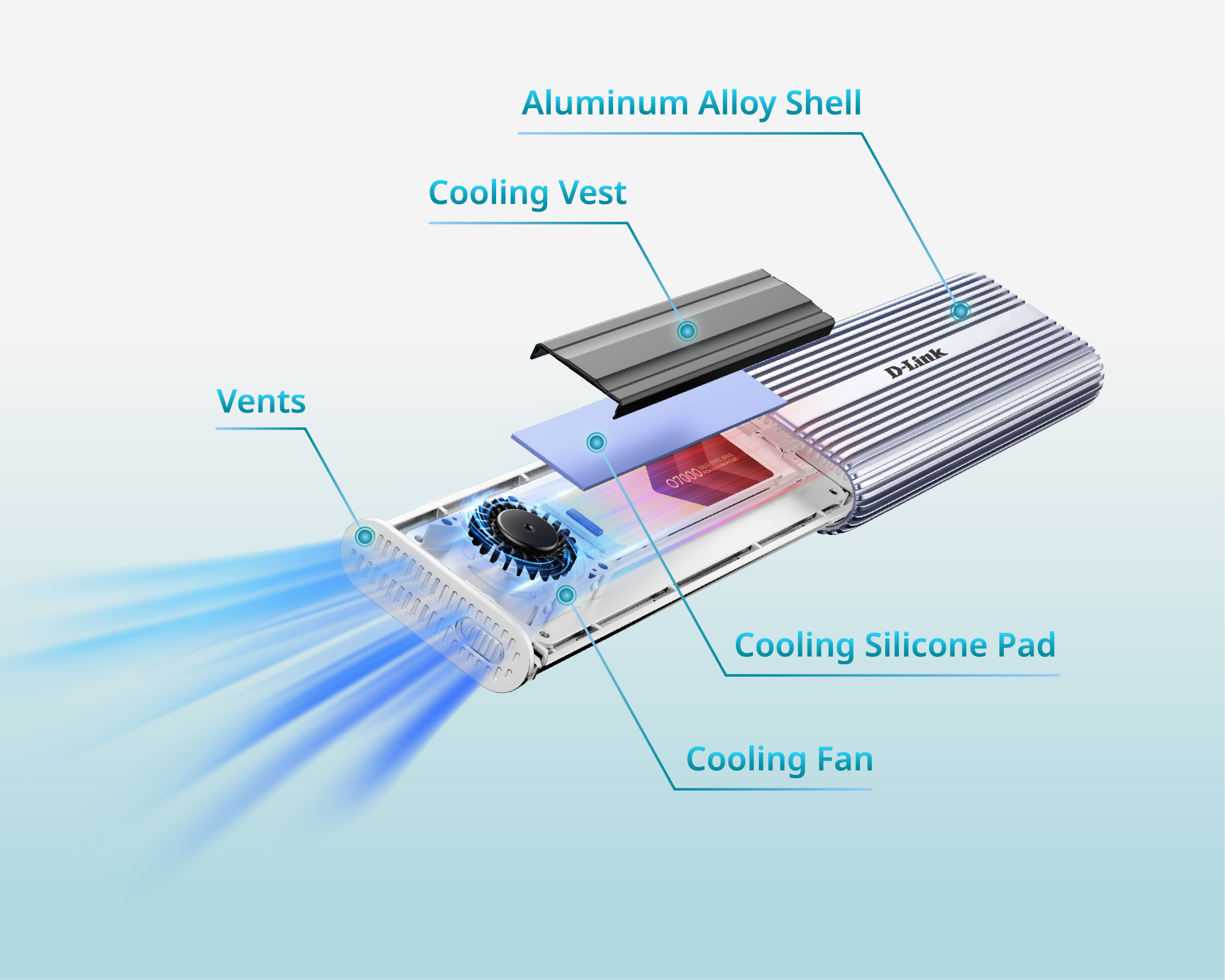 The D-Link DSP-411 SSD Enclosure delivers ultra-fast, portable up to 8 TB storage for professionals and creators. Supporting USB4, it offers up to 40 Gbps high-speed data transfer, ideal for 4K editing, backups, and streaming. With a durable aluminum design, a silent cooling MagLev fan and tool-free setup, it’s perfect for on-the-go use across Windows, macOS, Android and Linux devices, combining speed, convenience, and versatility in one compact enclosure.