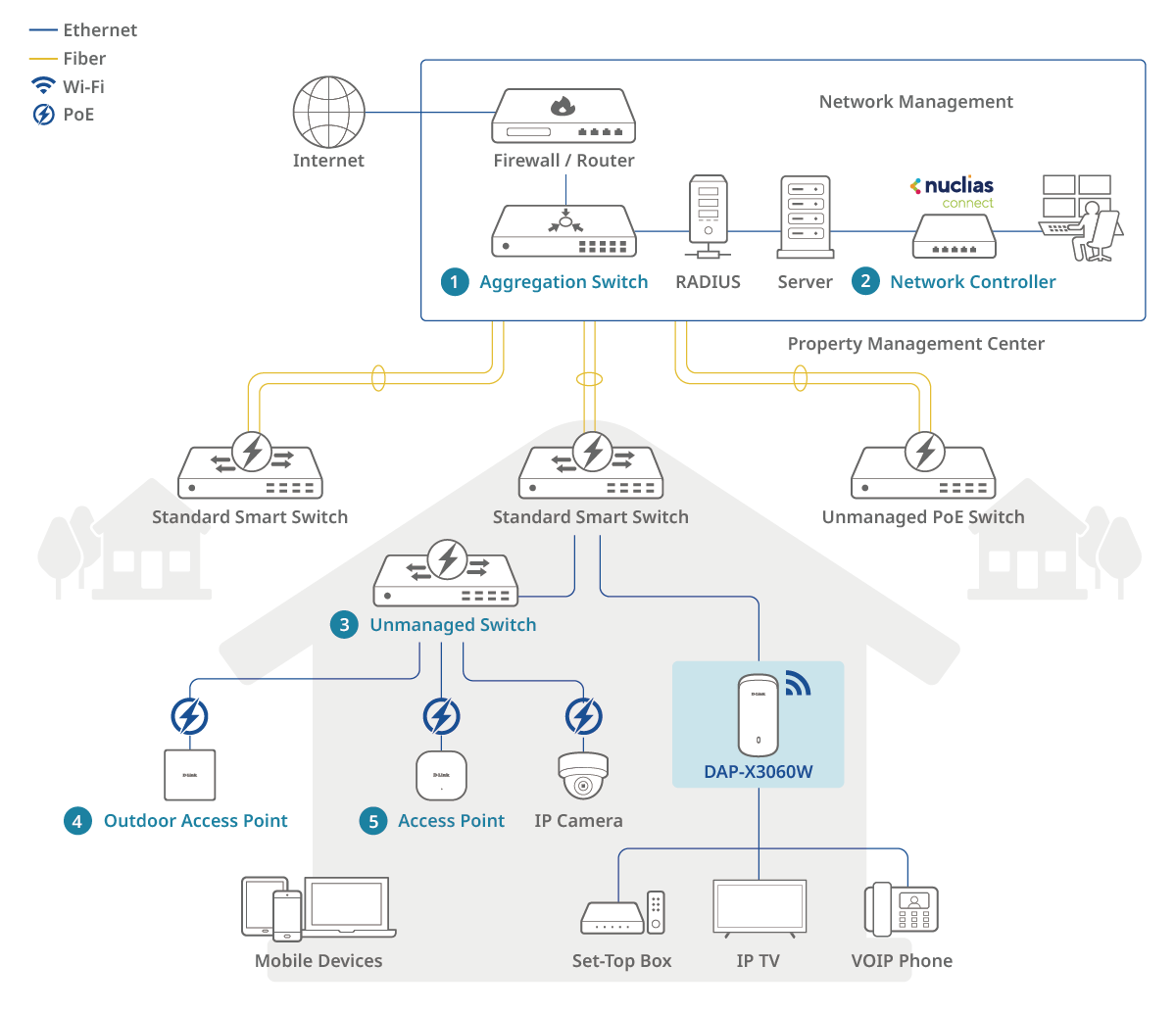 The DAP-X3060W integrates effortlessly with D-Link’s Nuclias Network Controller and management platform, providing centralized, remote network control from anywhere. This solution simplifies management, automation, and scalability, while built-in analytics and reporting deliver actionable insights down to each access point for smarter, data-driven decisions.