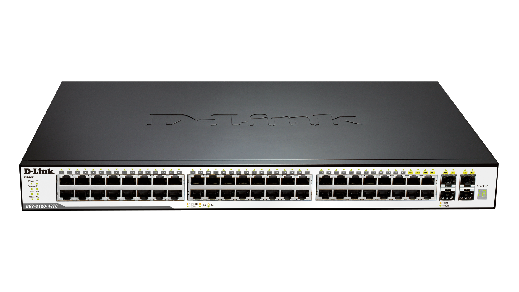 - DGS-3120-48TC: 48-Port Gigabit L2 Stackable Managed Switch including 4 x Combo 1000BASE-T/SFP ports and 2 x 10 Gbps stacking ports (smart fans)