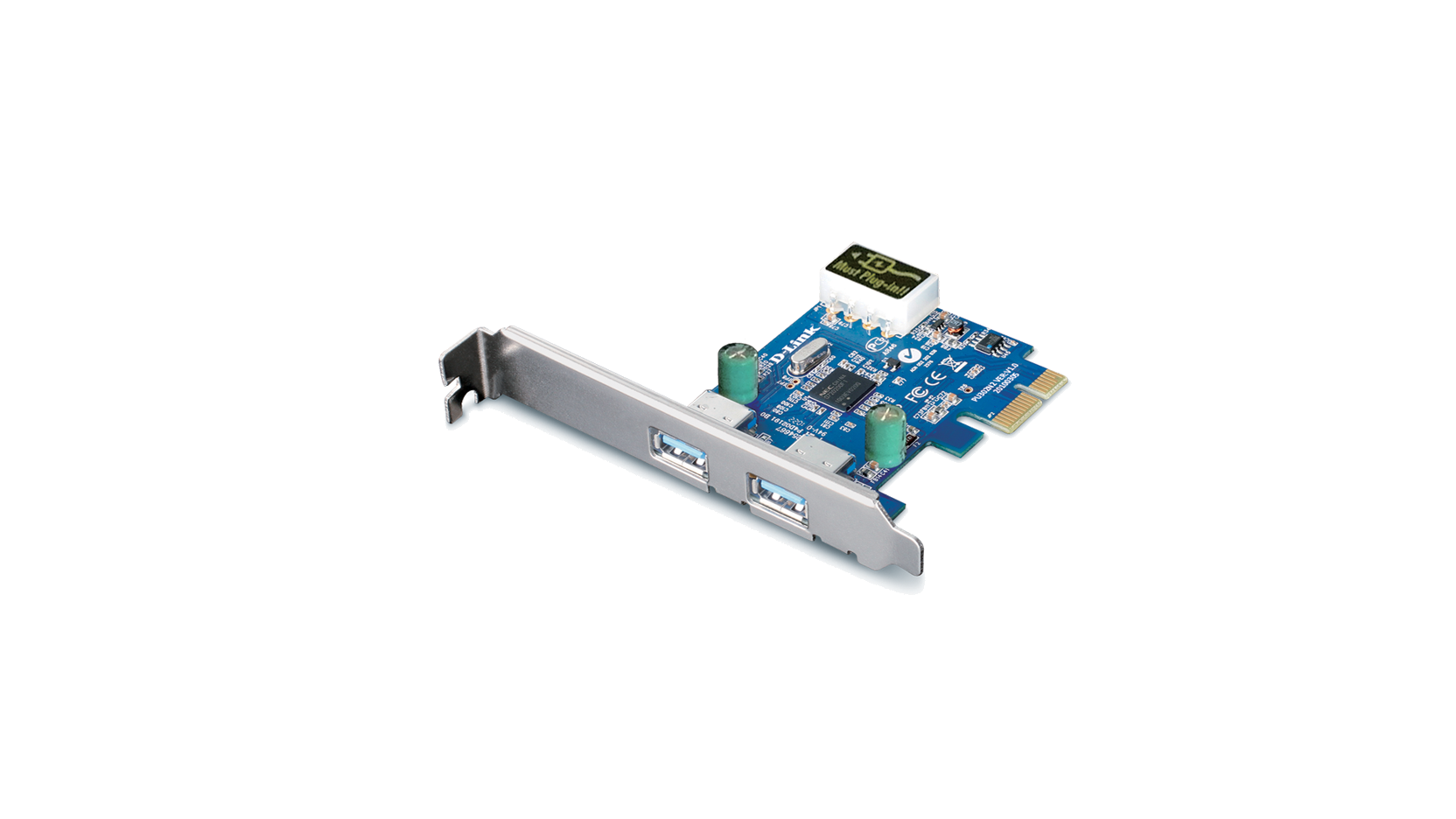 The D-Link 2-Port USB 3.0 PCI express card (DUB-1310) adds 2 USB 3.0 ports to your PC, allowing you to connect USB devices such as external storage, digital cameras, printers, and more. Providing data rates of up to 5Gbps - 10 times faster than USB 2.0¹. You can transfer your photos, music, and HD movies to a USB 3.0 external storage device faster than ever before.
