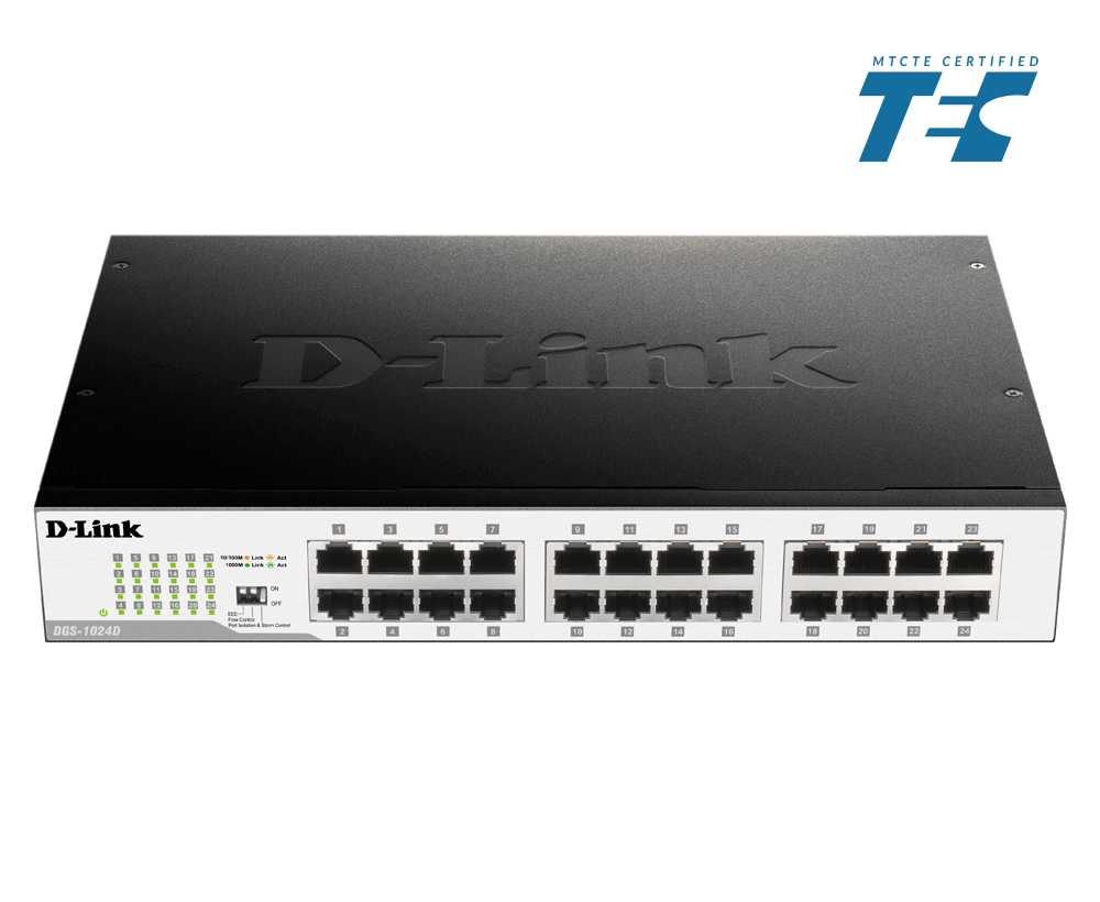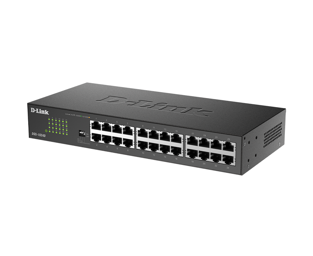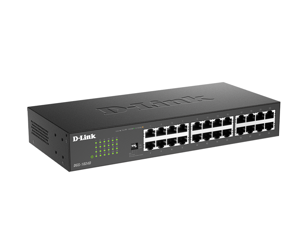 The D-Link DGS-1024D 24-Port Unmanaged Gigabit Switch offers an economical way for SOHO and Small-to-Medium Businesses (SMB) to take advantage of Gigabit Ethernet speeds while reducing energy consumption and minimising noise output.