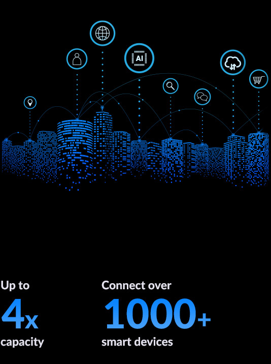 Il Wi-Fi 6 utilizza 8x8 MU-MIMO per ridurre significativamente la latenza, abilitare upload e download e ha un aumento di capacità x4 rispetto a SU-MIMO. Potenzia il tuo business con maggiore facilità e capacità di rete che mai.