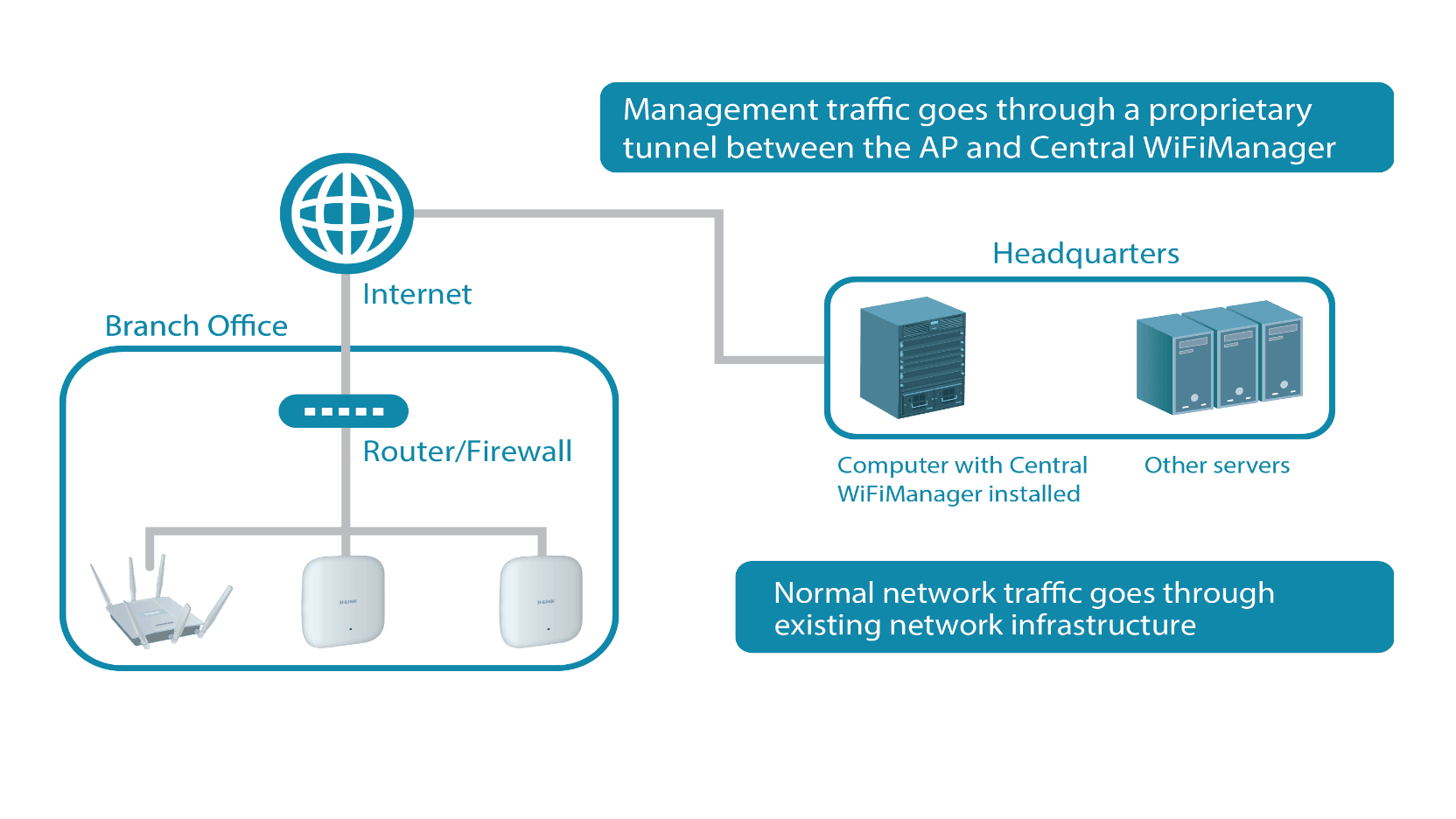 Che sia implementato in un computer locale o in hosting nel cloud, Central WiFiManager si integra in qualsiasi rete o azienda.