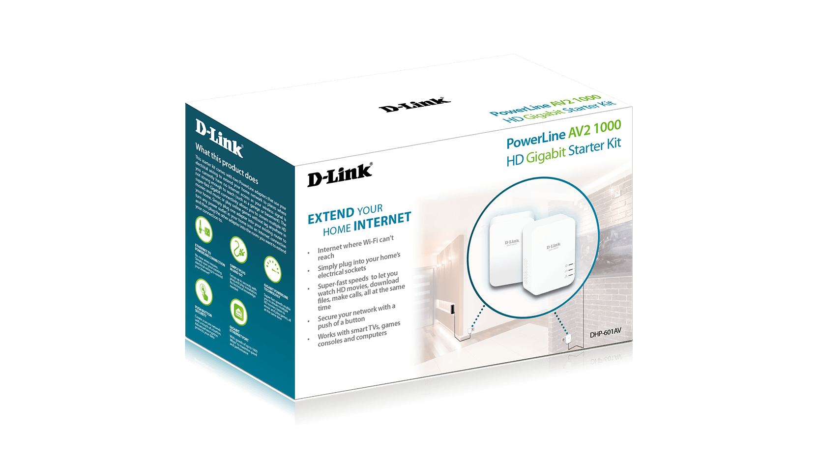 Il Kit PowerLine Gigabit AV2 1000 di D-Link (DHP-601AV) offre il massimo in fatto di connettività cablata per le aree della casa difficili da raggiungere. Utilizzando il cablaggio elettrico esistente in casa come rete ad alta velocità affidabile, il DHP-601AV rende facile il collegamento di computer, console per videogiochi e lettori multimediali alla rete senza bisogno di cavi aggiuntivi. Il DHP-601AV è la soluzione ideale per effettuare i collegamenti in spazi come uffici, camere da letto e altre aree della casa collegate al router in remoto.