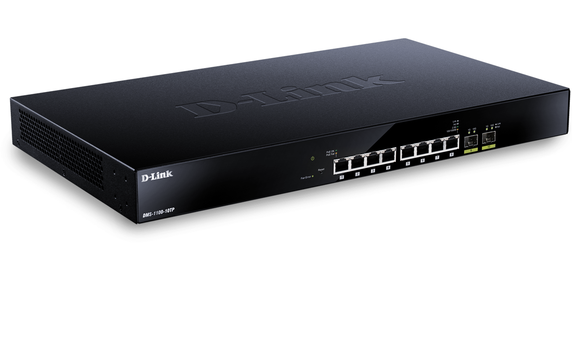 Ideale per le aziende che desiderano effettuare l'upgrade al Wi-Fi 6, il DMS-1100-10TP ha porte PoE 2.5 Gigabit e porte uplink 10 Gigabit SFP+ e fornisce così la connettività multi-gigabit necessaria per massimizzare il throughput tra gli access point e l'infrastruttura di rete.