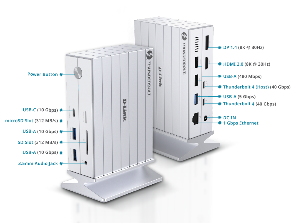 - Up to 8K resolution: HDMI 2.1, DP 1.4, and Thunderbolt 4 ports support up to 8K @ 30Hz single display