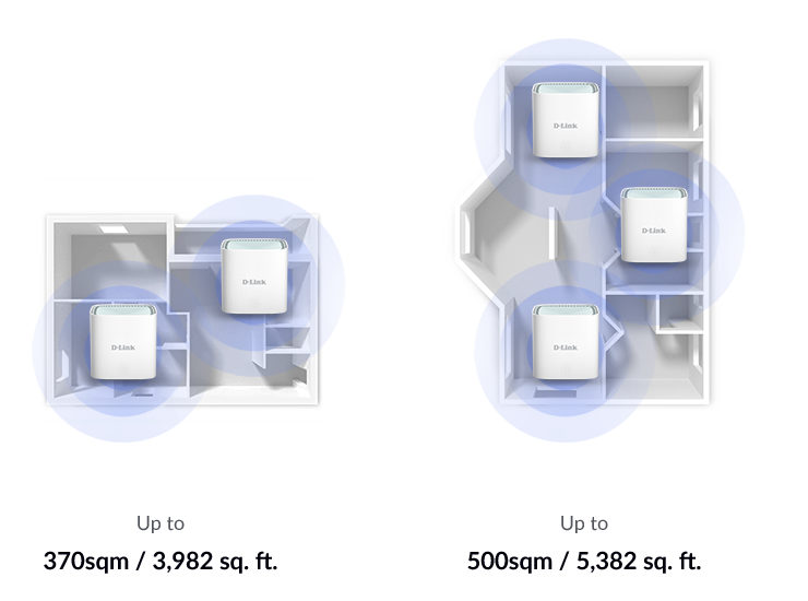 *Il numero di dispositivi connessi e l'area di copertura sono risultati del test D-Link. Le prestazioni possono variare in base alle diverse condizioni ambientali.