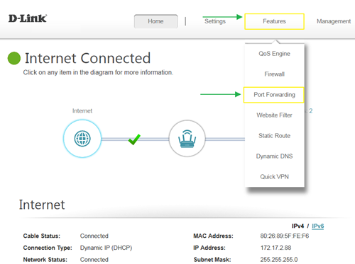Step 1: Click Feature -> Port Forwarding