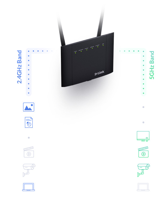 | Dual-band wireless Sends your devices the best speeds possible over the 5GHz and 2GHz bands. | |