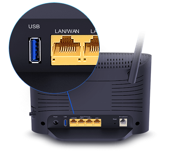 Utilise the DSL port to connect to your high-speed broadband in seconds. Use the Gigabit LAN ports for smart TVs, NAS, consoles, and media centres. You can also connect USB storage so everyone can share files, photos and videos to everyone connected to your network.
