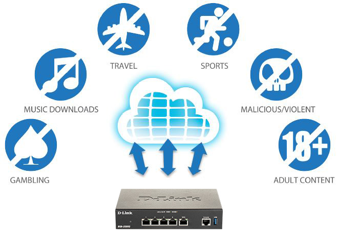 Dynamic DNS Dynamic route Inter-VLAN route Intrusion prevention system (IPS) NAT, PAT Static route Web content filtering |