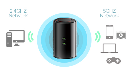 Browse the web, chat and email using the 2.4 GHz band. Stream digital media, play online games or make internet calls on the 5GHz band.