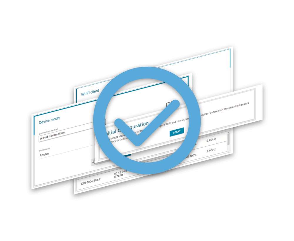 Smart adjustment of Wi-Fi clients is useful for networks based on several D-Link access points or routers – when the smart adjustment function is configured on each of them, a client always connects to the access point (router) with the highest signal level. Support of guest Wi-Fi network allows you to create a separate wireless network with individual security settings and maximum rate limitation. Devices connected to the guest network will be able to access the Internet, but will be isolated from the devices and resources of the router's LAN.