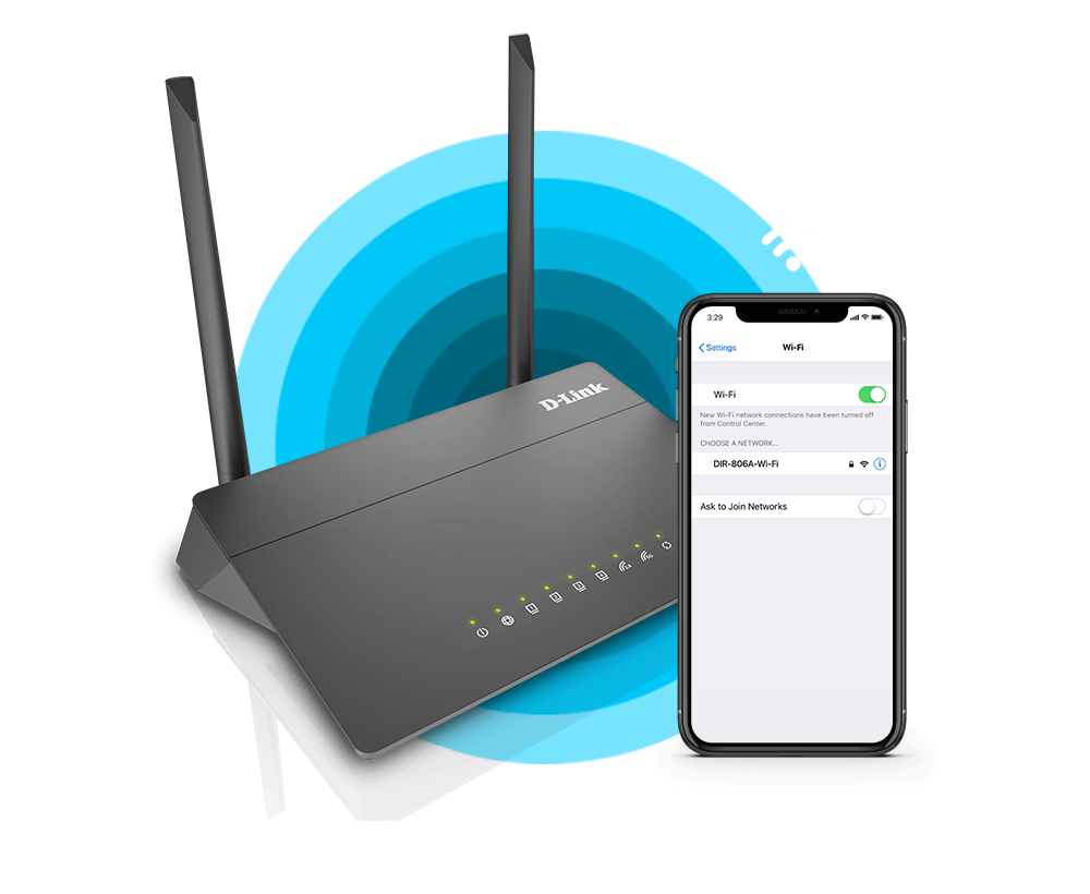 Using the DIR-806A device, you are able to quickly create a high-speed wireless network at home or in your office, which lets computers and mobile devices access the Internet virtually anywhere (within the operational range of your wireless network). Simultaneous activity of 2.4GHz band and 5GHz band allows performing a wide range of tasks. The router can operate as a base station for connecting wireless devices of the standards 802.11a, 802.11b, 802.11g, 802.11n, and 802.11ac (at the wireless connection rate up to 733Mbps1).