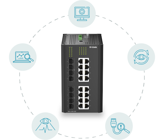 The DIS-310G-24X supports comprehensive OAM functions (Y.1731, IEEE 802.1ag, and IEEE 802.3ah) to continuously monitor physical links and service paths. This enables network administrators and service providers to quickly identify faults, verify connection status, and maintain high service quality.