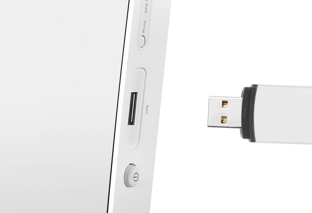 - USB 2.0 port to share media from a storage device or attach a 3G/4G mobile wireless networking device