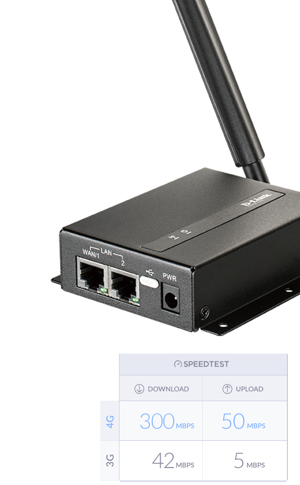 Easily connect to your high-speed 4G/3G LTE mobile connection and enjoy downlink speeds of up to 300 Mbps1 and uplink speeds up to 50 Mbps1 - facilitating fast, reliable and responsive Internet access that enables you to deploy the router in a remote location, and still access your devices from anywhere.