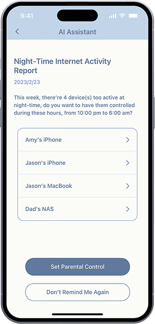 Easily set up your network and manage it from anywhere using the AQUILA PRO AI App, which features an intuitive interface and an AI Assistant that helps monitor network performance and provides weekly network stability reports.