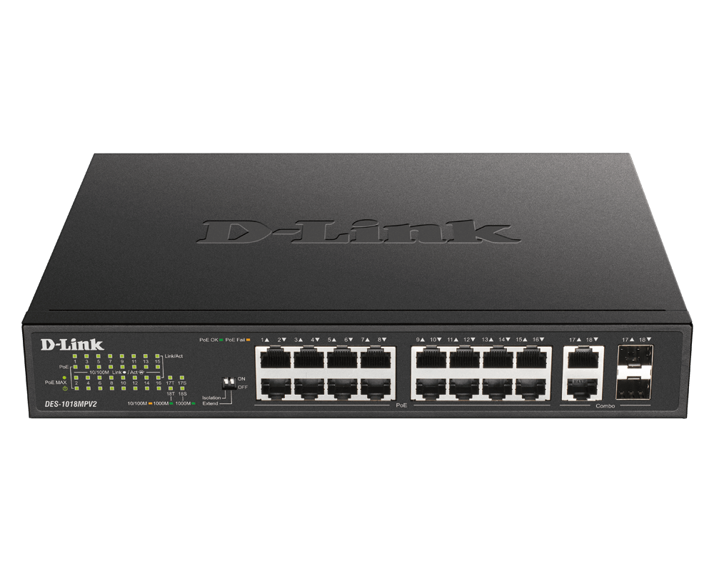 The DES-1018MPV2 is specifically designed to facilitate easy connections and supply of power to devices such as access points (AP) or IP cameras and phones. But that’s not all, connect other Ethernet devices such as computers, printers and NASs to unify all your devices under one efficient network ready for any application.
