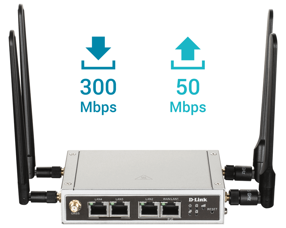 The DWR-925 is a versatile device that is viable for a variety of deployment options. With download speeds of 300 Mbps and upload speeds of 50 Mbps, it’s ready to handle most day-to-day demands. Deploy in locations with no wired broadband access or as a failover should your primary wired network go down to keep operations running smoothly.