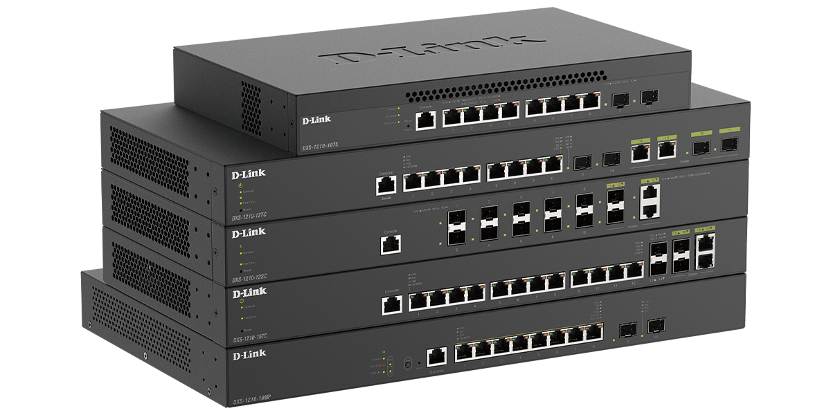 The DXS-1210 series includes layer 2 features such as port mirroring, Spanning Tree Protocol (STP), and Link Aggregation Control Protocol (LACP). They also support IP interfaces, ARP, IPv6 Neighbor Discovery (ND), default routing, IPv4/IPv6 static routing, IGMP and MLD Snooping, auto voice and surveillance VLAN, LLDP and LLDP-MED.