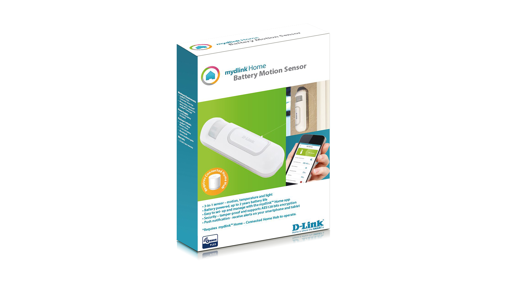 Be alerted when motion is detected in your home with the mydlink™ Home Battery Motion Sensor, wherever you are. It’s easy to set up and manage with the mydlink Home app1, and connects to your router via the mydlink Home - Connected Home Hub2,3. Whether you are at home or away, push notifications will alert you whenever motion is detected. What’s more, it works with other mydlink Home smart devices to enable you to create a smart home without complicated set up, installation costs or monthly subscription charges.