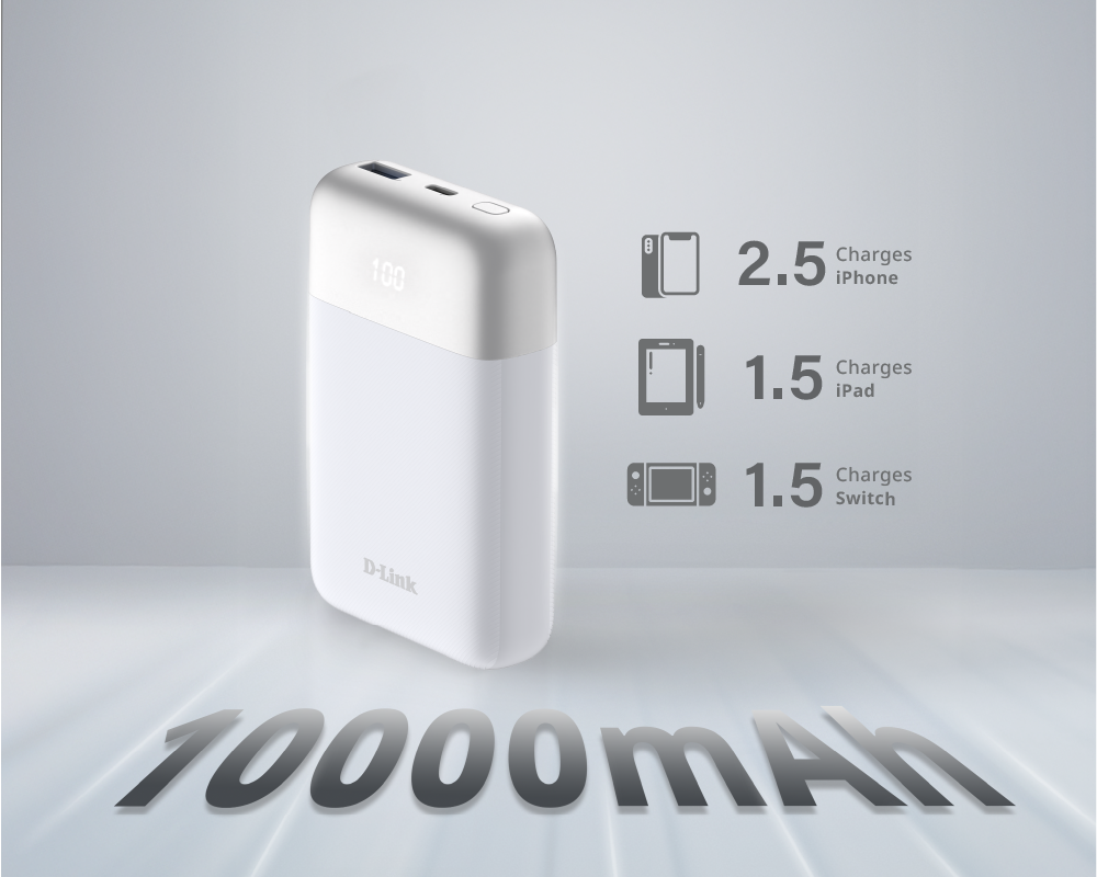 With a robust 10000mAh capacity, the DPP-101 power bank keeps your devices going longer, which is great for busy days, long commutes, or weekend getaways. Recharge your iPhone X up to 2.5 times, iPad mini 1.5 times, or Nintendo Switch 1.5 times* and stay connected without searching for the next outlet.