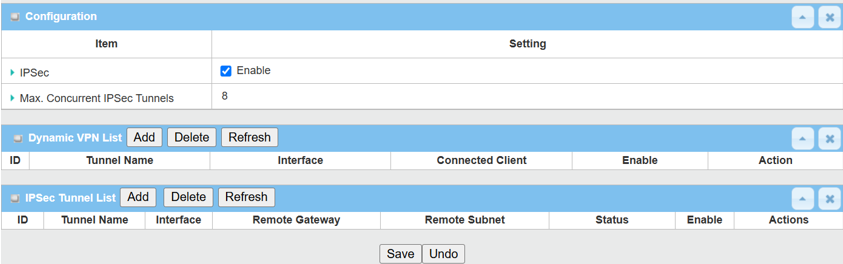 1. Enable IPsec setting: Go to Security > VPN > IPsec tab