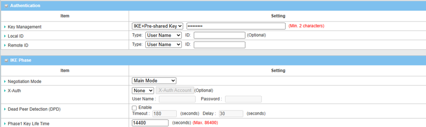 Key Management Select IKE+Pre-shared Key from the drop-down menu, and fill in the pre-shared key