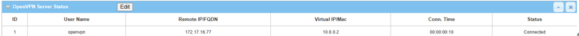 The OpenVPN Server Status will display the status of all connected OpenVPN tunnels.
