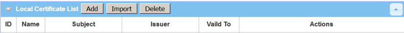 Click the Add button to generate the Local Certificate List