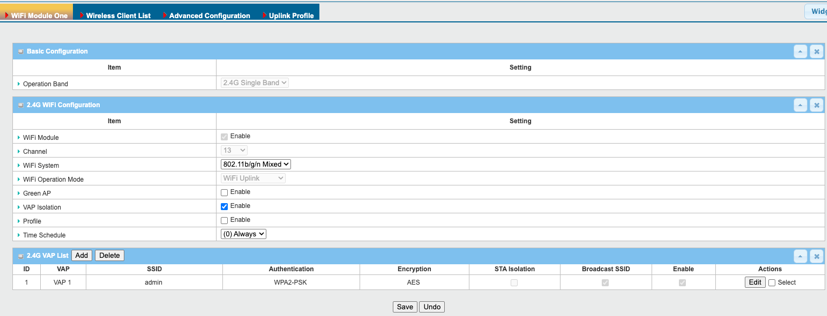 2. Enable Wi-Fi Module in 2.4G Wi-Fi Configuration