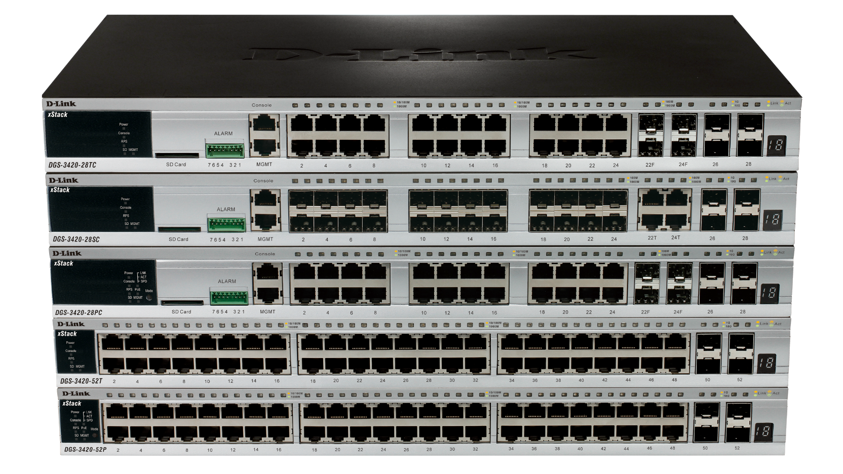 The xStack DGS-3420 series of next generation Layer 2+ Gigabit switches delivers performance, flexibility, security, multi-layer QoS, and accessibility, along with redundant power solutions for SMBs and enterprises. With high Gigabit port densities, Gigabit SFP, 10-Gigabit SFP+ support, and advanced software solutions, these switches can act as either departmental access layer devices or aggregation switches to form a multilevel network structured with backbone and centralised high-speed servers.