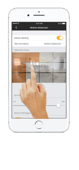 Detection Area - Tap the areas of the grid to turn motion detection on or off for that area. Orange shading indicates that an area is being monitored for motion detection.