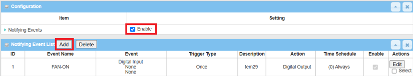 The purpose of digital inputs and outputs is to monitor and control connected devices, or to receive signals from the devices to trigger specific events. In this example, we will show the Digital Input (DI), Digital Output (DO) configuration rules of the M2M DOM Series devices and how to set trigger events to take actions on DO when trigger events come in from the digital input. The DO of the M2M DOM Series products supports Relay Contact and Open Collector. In addition, the DO of the M2M DOM Series products is a dry contact.