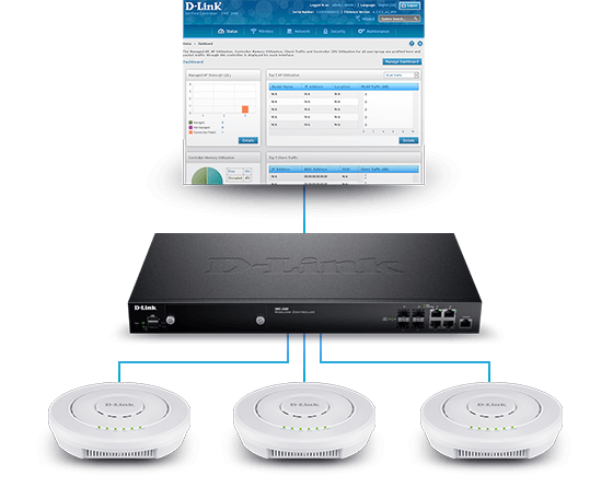 The D-Link DWL series allows multiple access points to be configured and managed from a hardware-based controller.