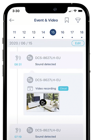With a mydlink™ Cloud recording subscription, you can have peace of mind that your video recordings are saved automatically to the secure cloud server, so intruders won’t be able to steal footage.
