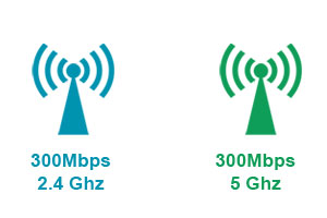 Supports up to 300Mbps for the 5Ghz band and up to 300Mbps for the 2.4Ghz band