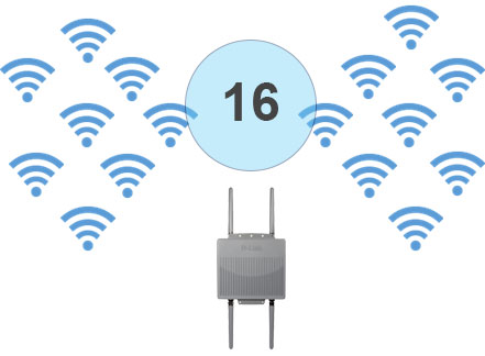Supports up to 16 SSIDs, 8 per Band