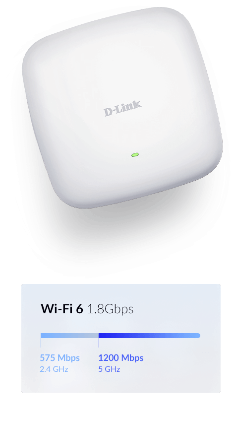 With combined Wi-Fi 6 802.11ax speeds of up to 1,800 Mbps, the DAP-X2810 provides lightning-fast connectivity, enabling large data transfer and superior quality video streaming, even in highly congested environments.