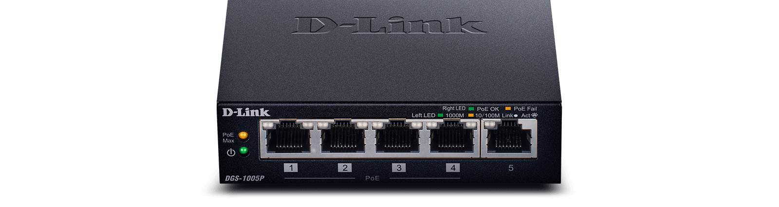 The D-Link DGS-1005P 5-Port Desktop Gigabit PoE+ Switch enables you to connect Power over Ethernet (PoE) devices such as wireless access points (APs), network video cameras and IP phones to the network. Built with home and small business users in mind, the DGS-1005P is compact and operates silently, making it ideal for most rooms and offices.