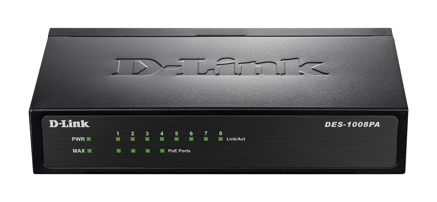 The DGS-1008MP features 8 x 10/100/1000BASE-T ports that support the IEEE 802.3at PoE+ protocol. Each of the 8 PoE+ ports can supply up to 30 watts with a total PoE power budget of 125 watts. PoE is especially suitable for devices that are far from power outlets or when you want to minimise the clutter of extra cables.