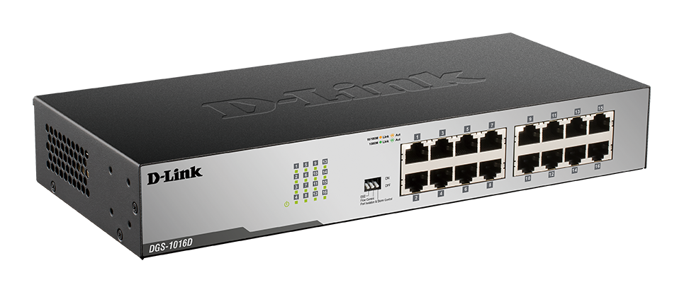 The D-Link DGS-1016D 16-Port Unmanaged Gigabit Switch series offer an economical way for SOHO and Small-to-Medium Businesses (SMB) to take advantage of Gigabit Ethernet speeds while reducing energy consumption and minimising noise output.