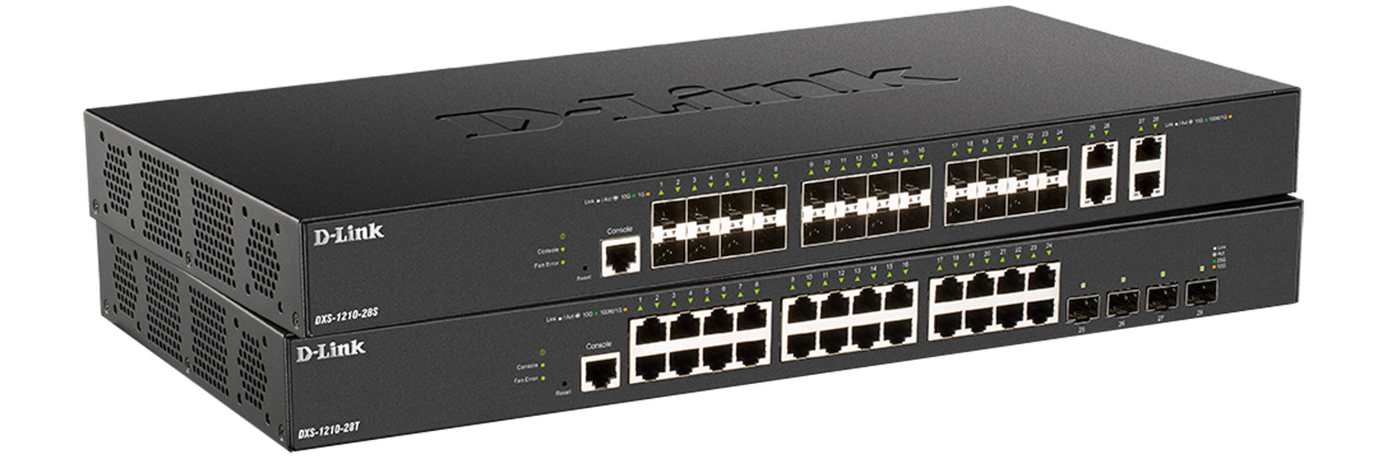 - 25GbE SFP28 ports1 (DXS-1210-28T only)