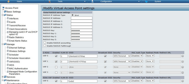 Step 2 - Same procedure for the second DWL-6700AP (AP2), configure the same Wi-Fi network (SSID) as the first (with the same security key)