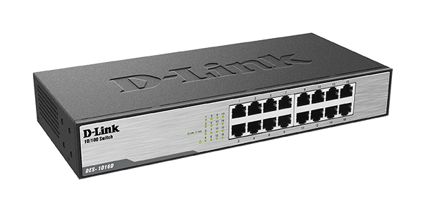 The DES-1016D switch offers an economical way for SOHO and small to medium businesses (SMB) to benefit from high-speed networking. It provides twenty-four ports for easy expansion of your network and a quick way to upgrade your network to Fast Ethernet connectivity. The switches speed file transfer times, improve slow and sluggish networks, keep your vital business applications available, and help your employees respond more quickly to customers and each other.