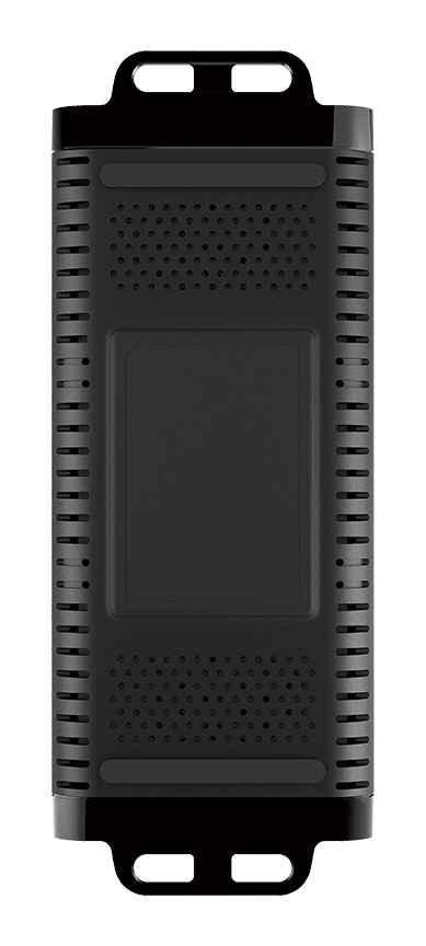 De extender heeft een matzwart, discreet ontwerp met gitzwarte randen, ventilatieopeningen om de luchtstroom te reguleren en 3 digitale blauwe LED-lampjes die de status van de aangesloten voeding en de richting van de stroom en data aangeven.