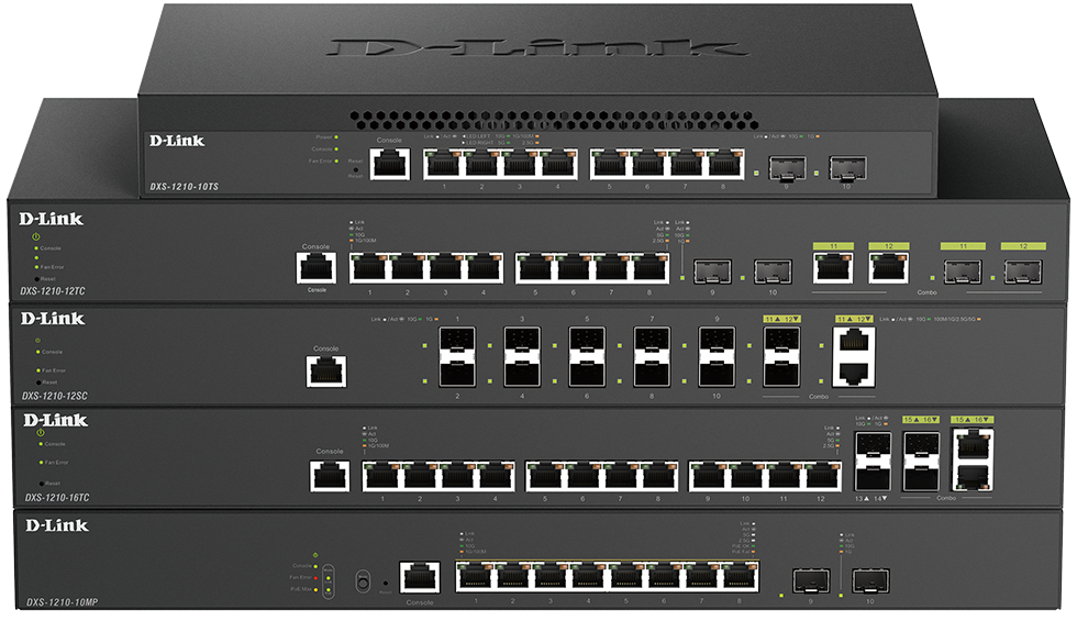 De DXS-1210-serie heeft zowel RJ45- als SFP+- poorten waarop cat. 6- en glasvezelkabels voor 10G Ethernet kunnen worden aangesloten. Dit betekent dat de DXS-1210-serie een flexibele oplossing biedt voor upstream of downstream serververbindingen, waardoor de netwerkimplementatie eenvoudiger wordt.